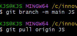그리고 git pull origin 브랜치명을 입력하면 개별 브랜치에 있는 데이터를 가져옵니다.