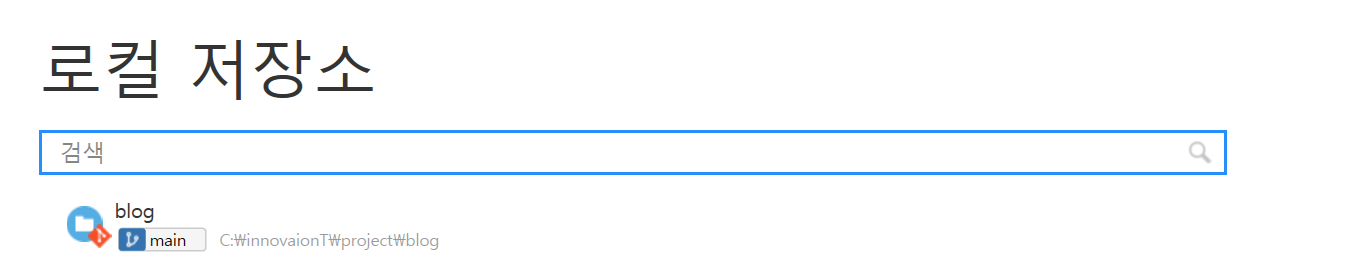 로컬 저장소를 클릭하여 Git 데이터를 저장한 폴더를 드래그하여 넣으면 데이터가 들어옵니다.