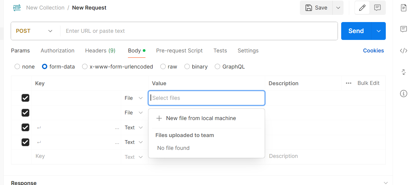 만들면 하나의 request 파일이 만들어 지는데 여기서 폴더나 실행파일의 이름은 명칭을 더블클릭 하거나 우클릭 후 rename을 눌러 수정도 가능하니 팀원간의 규칙을 통해 만들면 좋다.